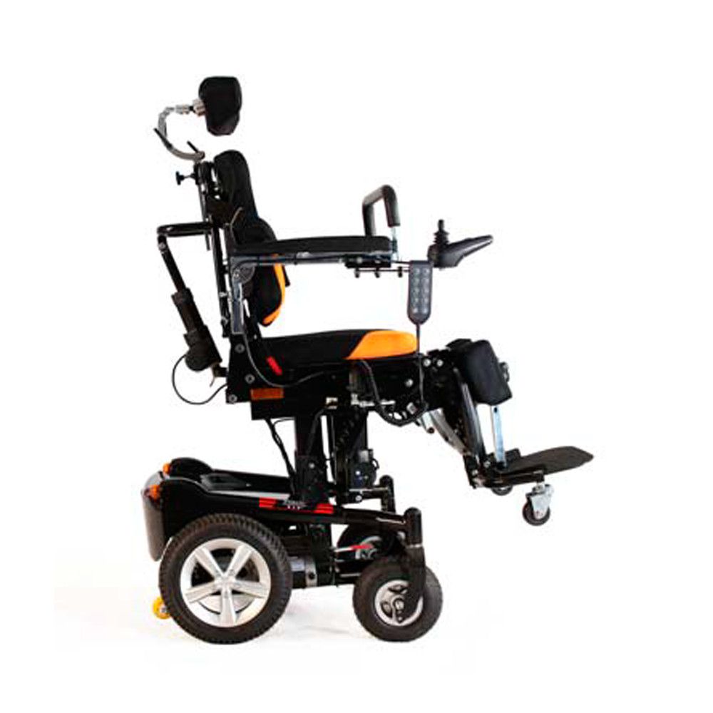 Кресло-коляска с электровертикализатором MET VERTIC 2 сочетает в себе функции электрического кресла-коляски, электроприводного вертикализатора и процедурной кушетки высотой до 81 см, потому что кресло, оснащённое электроактуаторным лифтом под сиденьем, раскладывается в горизонталь и может использоваться как ложе для медицинских манипуляций. Электроприводное шасси не теряет работоспособности ни в вертикальном, ни в горизонтальном положении кресла и этим может пользоваться больной и помогающие ему люди.