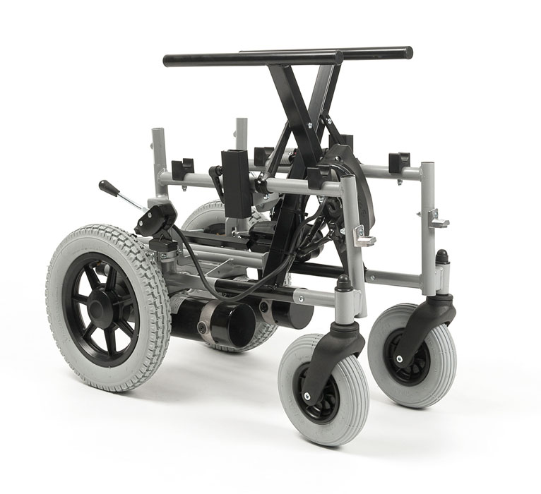 Кресло-коляска оснащено задним приводом, может развивать скорость 6 км/ час и и имеет запас хода 30 км. Ширина посадочного места регулируется по ширине с помощью удлиненных подлокотников.
