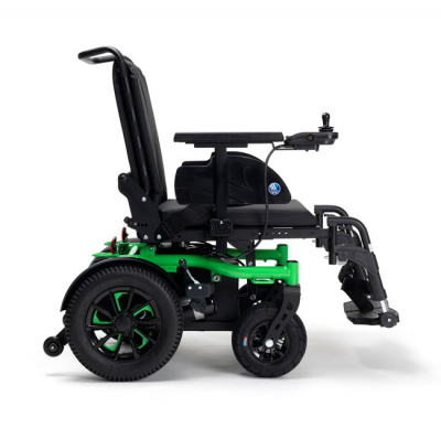 Габаритная ширина коляски составляет всего 58 см, что значительно облегчает перемещение пользователя в узких коридорах, а также свободно проезжает через узкие двери и проемы. В то же время продуманные дизайнерские решения, использование относительно мощных аккумуляторов на 50 Ач гарантируют плавную и стабильную езду длительное время без подзарядки. Большой размер передних и задних колес (350 мм сзади, 260 передних (опция)) позволяет коляске эффективно перемещаться на пересеченной местности с неровными поверхностями, такими как песок, трава, гравий.