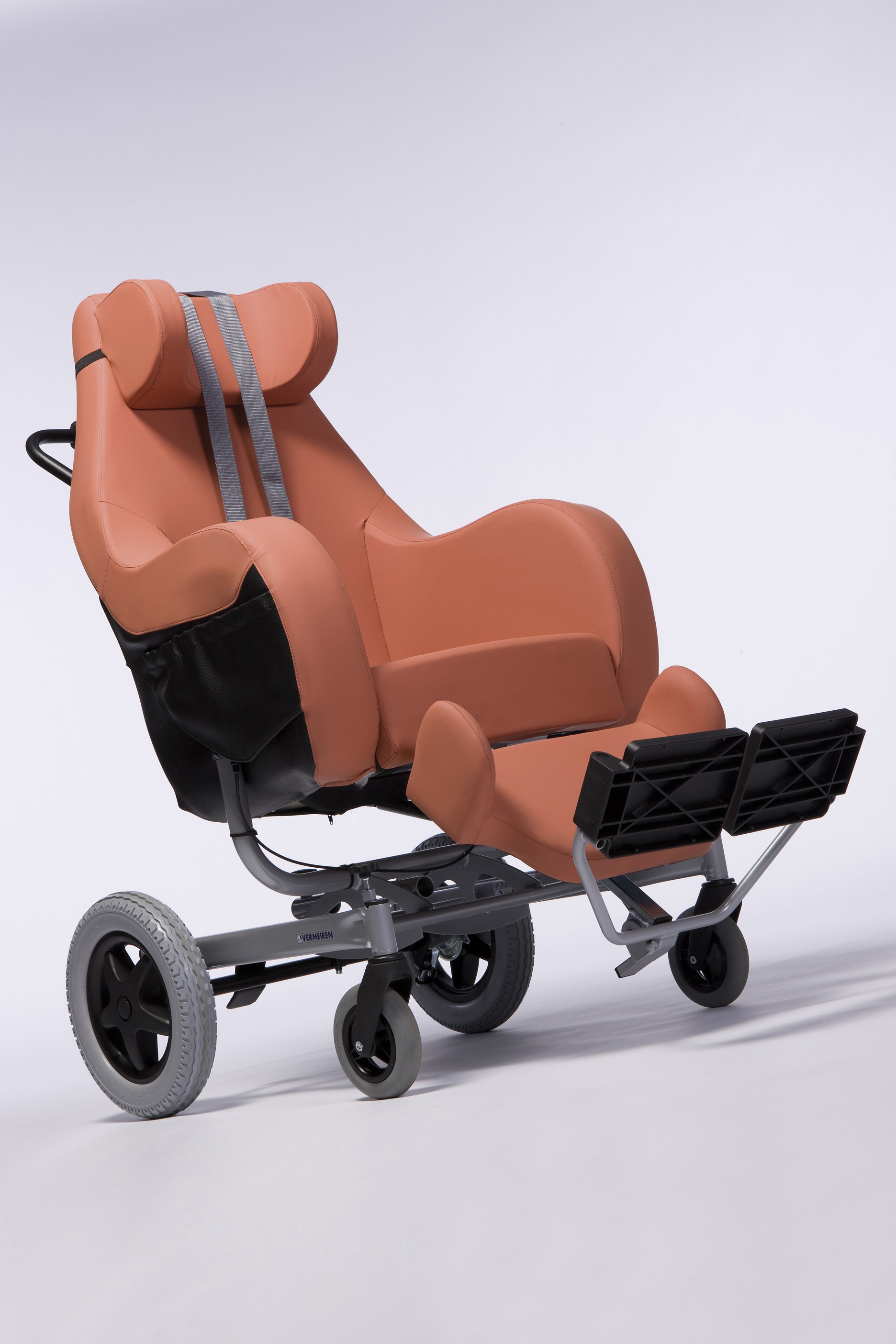 Пользователь может быть перевозим в помещениях или на прогулке. Эргономичные спинка, сиденье, подголовник обеспечивают высокий уровень комфорта. Снижается нагрузка на позвоночник, шею, область таза.
