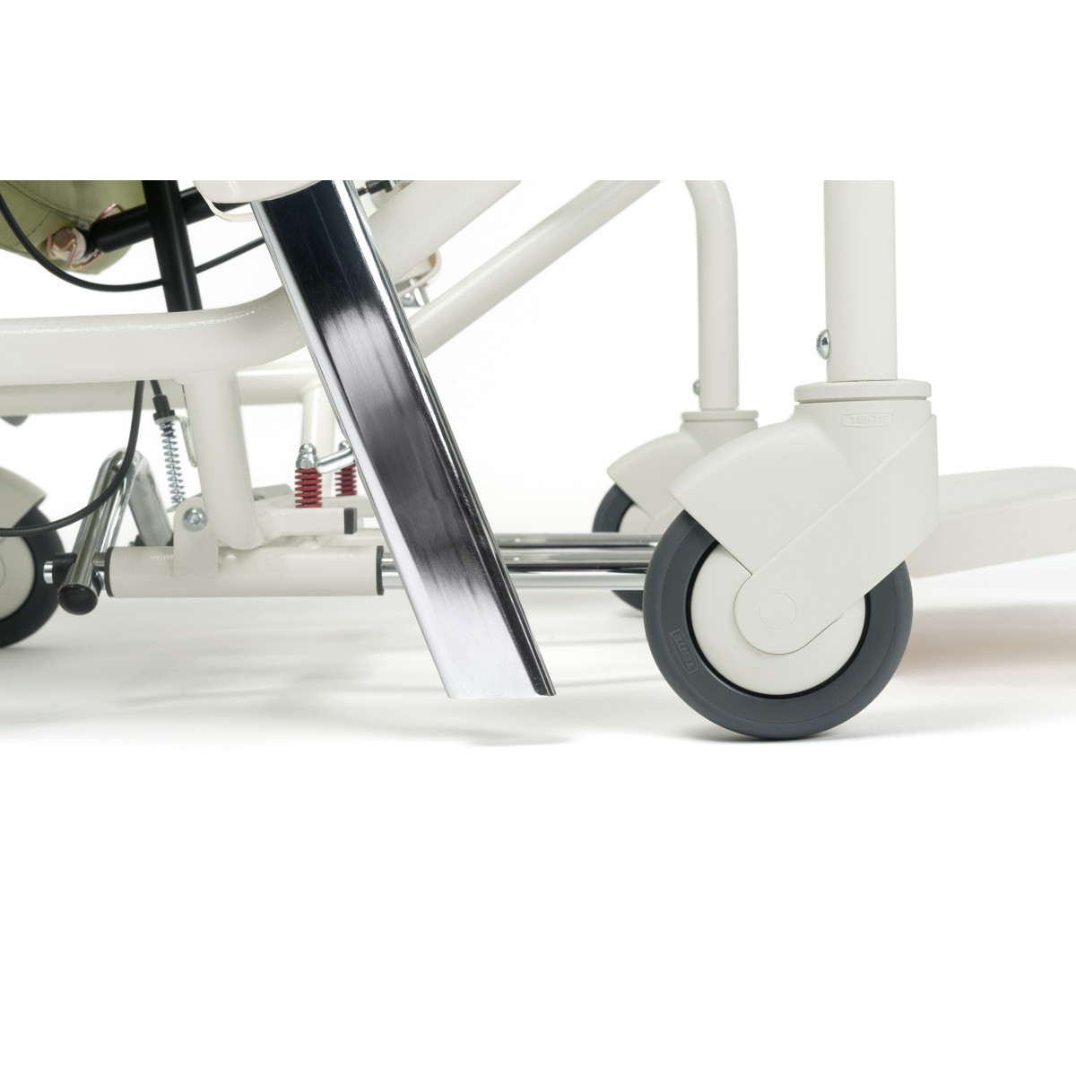 Регулировка по углу наклона спинки: с помощью газовых пружин на 30º с возможностью изменения угла наклона спинки, как сопровождающим лицом, так и пациентом самостоятельно.