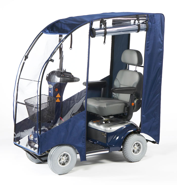 Скутер для инвалидов и пожилых людей оснащен комфортным вращающимся анатомическим креслом со съемным подголовником и опускающимися подлокотниками для удобной посадки и высадки пользователя.