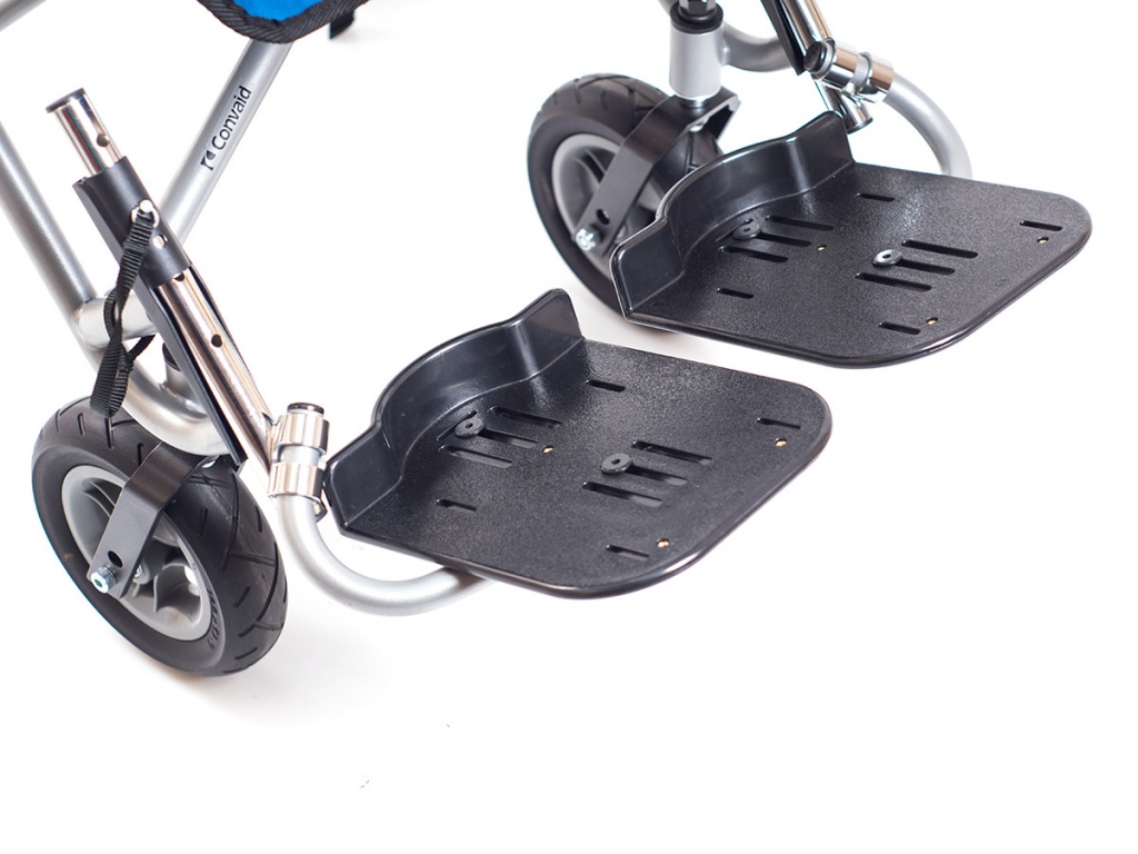 Детская инвалидная кресло-коляска Convaid Vivo - предназначена для транспортировки детей с нарушениями опорно-двигательного аппарата при помощи сопровождающего лица или самостоятельно как внутри помещения, так и на улице. Коляска складная по типу "трость". Удлинитель сиденья и регулируемые по высоте откидные подножки позволяют коляске "расти". Опоры для стоп регулируются по глубине. Натяжение спинки обеспечивается системой ремней. 3-точечный ремень безопасности, регулируемый по глубине в паховой области. Съемный капюшон оснащен прозрачным окошком для сопровождающего лица.