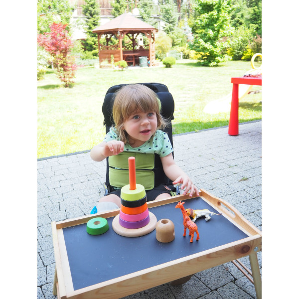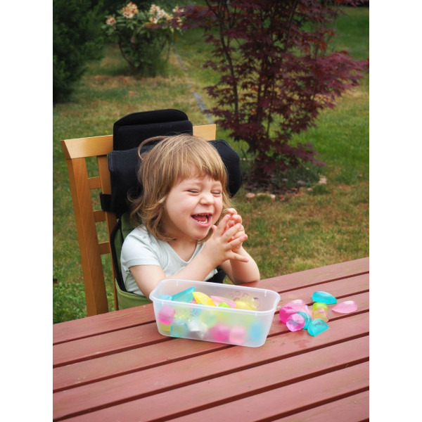 Travel SIT состоит из сиденья, оснащенного шестью мобильными элементами, двумя ремнями безопасности и анатомическим подголовником. Кресло можно использовать детям с нарушением осанки и мышечной дисфункцией. Обивка ZERO SPOT SYSTEM предотвращает впитывание пролитой жидкости. Ткань одновременно практична, имеет яркие цвета и приятна в использовании.