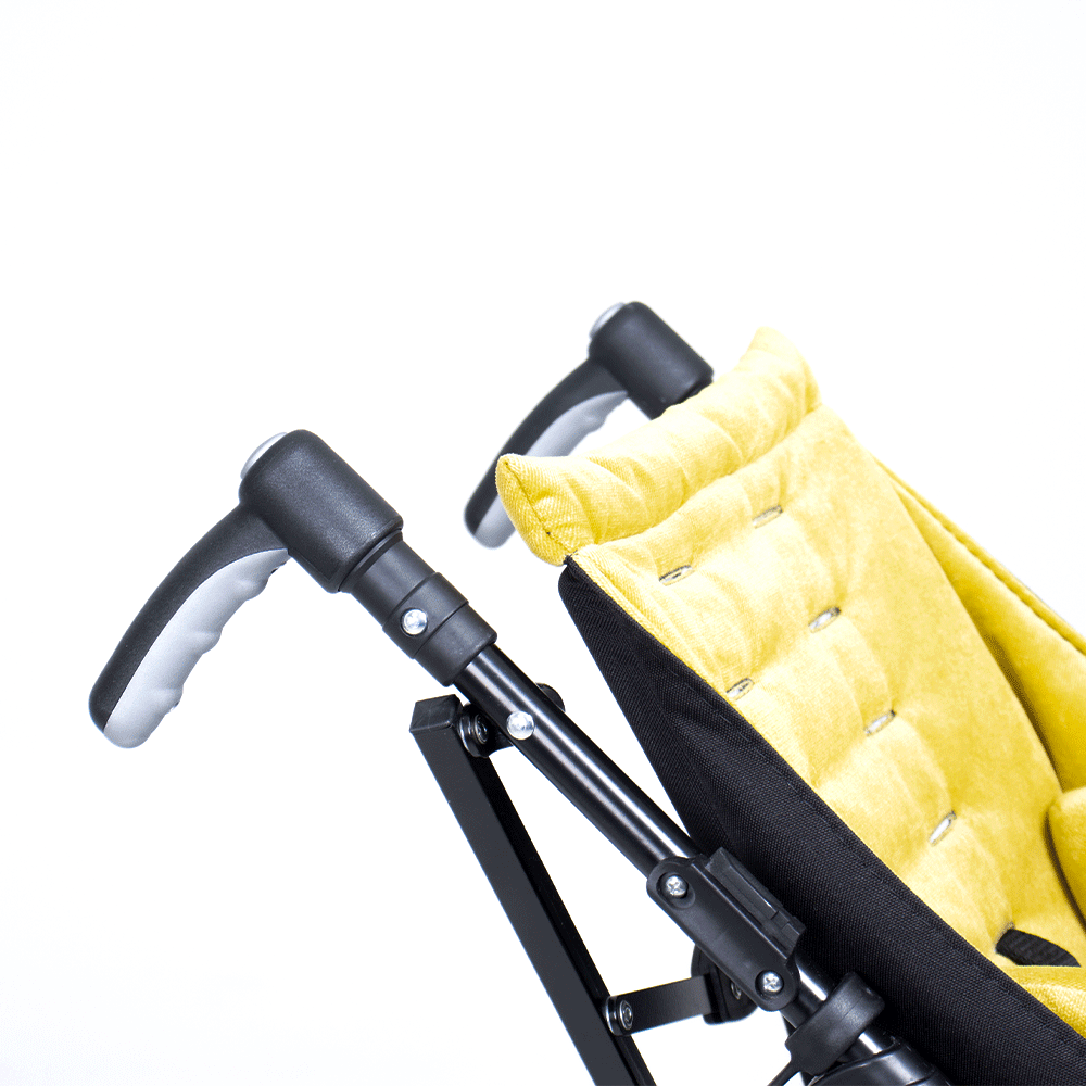 Регулируемые ручки с эргономичным захватом можно установить в два положения (вверх и вниз), что позволяет легко управлять коляской людям разного роста