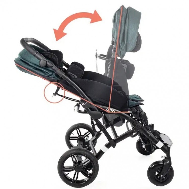 Коляска имеет регулировку бёдер и груди, высоты подголовника и спинки, а также возможность удлинения сиденья и регулировки подножки в соответствии с индивидуальными потребностями ребёнка.
