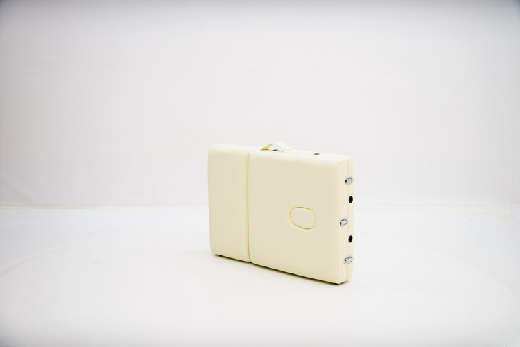 Массажный стол-чемодан, актуального дизайна с кремовой панелью, компактно складывается для удобной транспортировки и убирается в сумку-переноску. Оборудован поднимающимся подголовником, снабженным лицевым вырезом, продублированным в изголовье и закрывающимся мягким инсертом, регулируемым подвесом для рук.