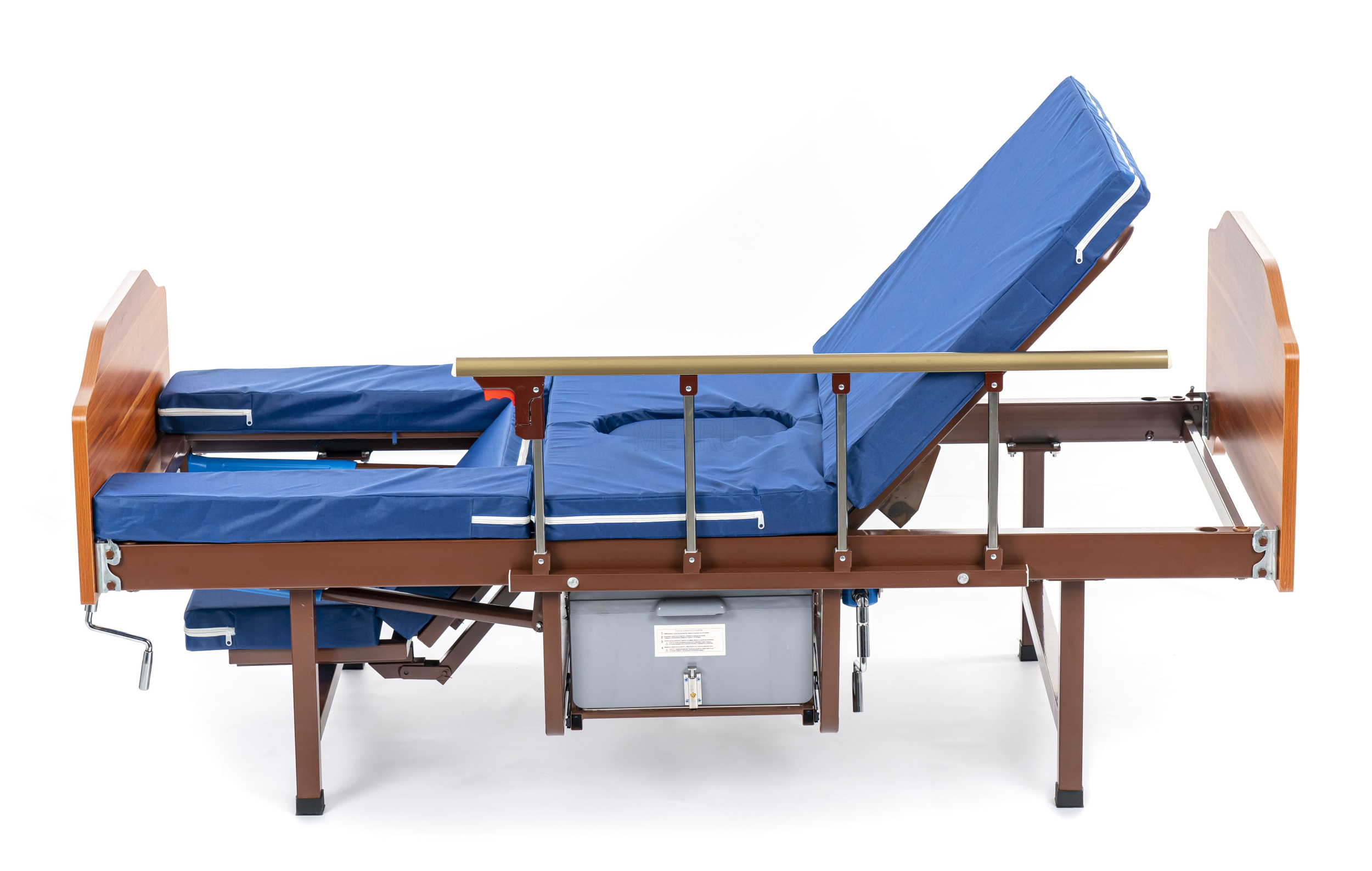 Недорогая четырехсекционная функциональная кровать-кресло с независимыми винтовыми регулировками угла наклона спинной секции и положения секций. Боковые ограждения в комплекте