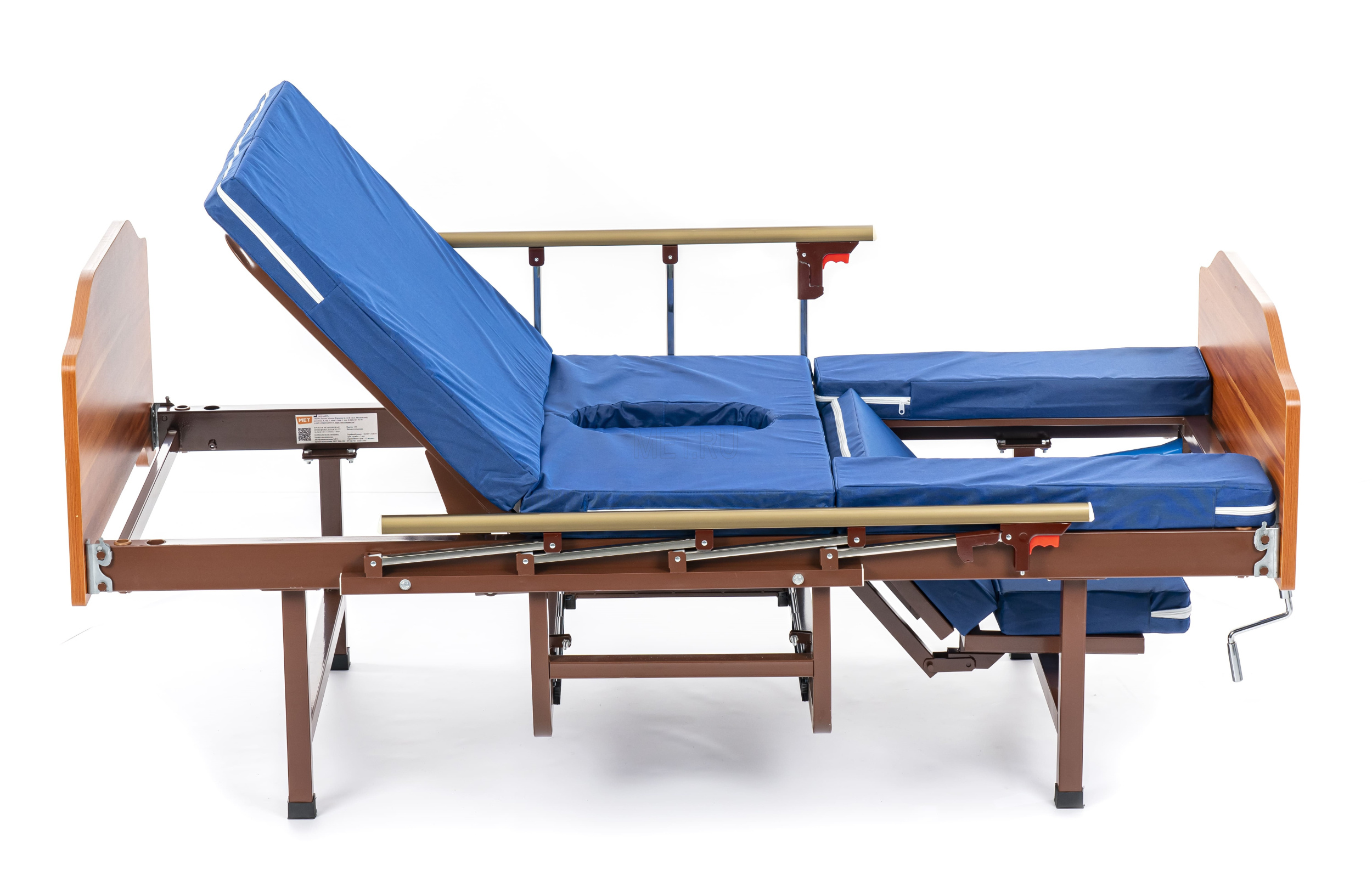 Опускающаяся ножная секция позволяет кровати MET TARYS занимать терапевтическое положение "кардиокресло", показанное при лечении большинства кардио-заболеваний, а полноценное сидячее положение, достижимое с помощью такой конструкции ложа делает бодрствование больного максимально удобным и полноценным.