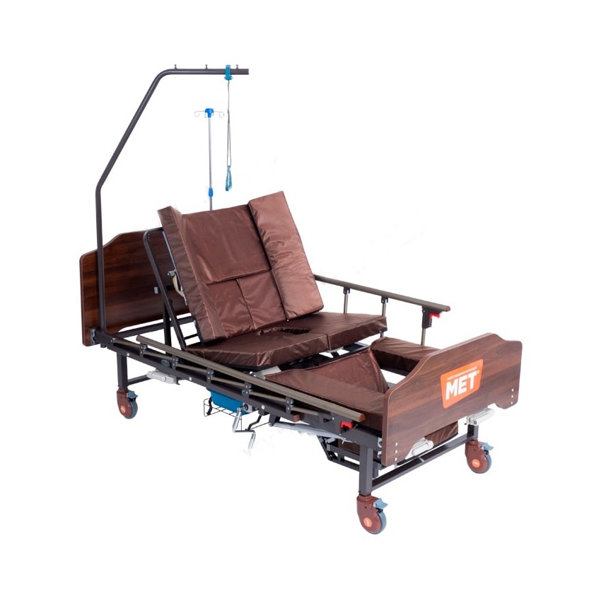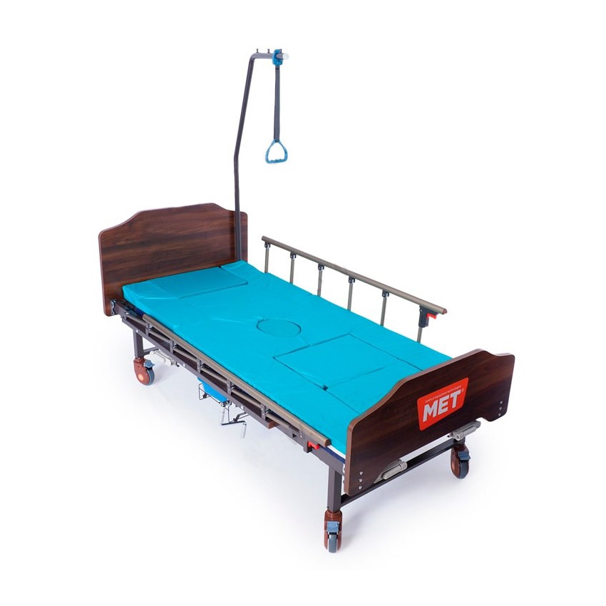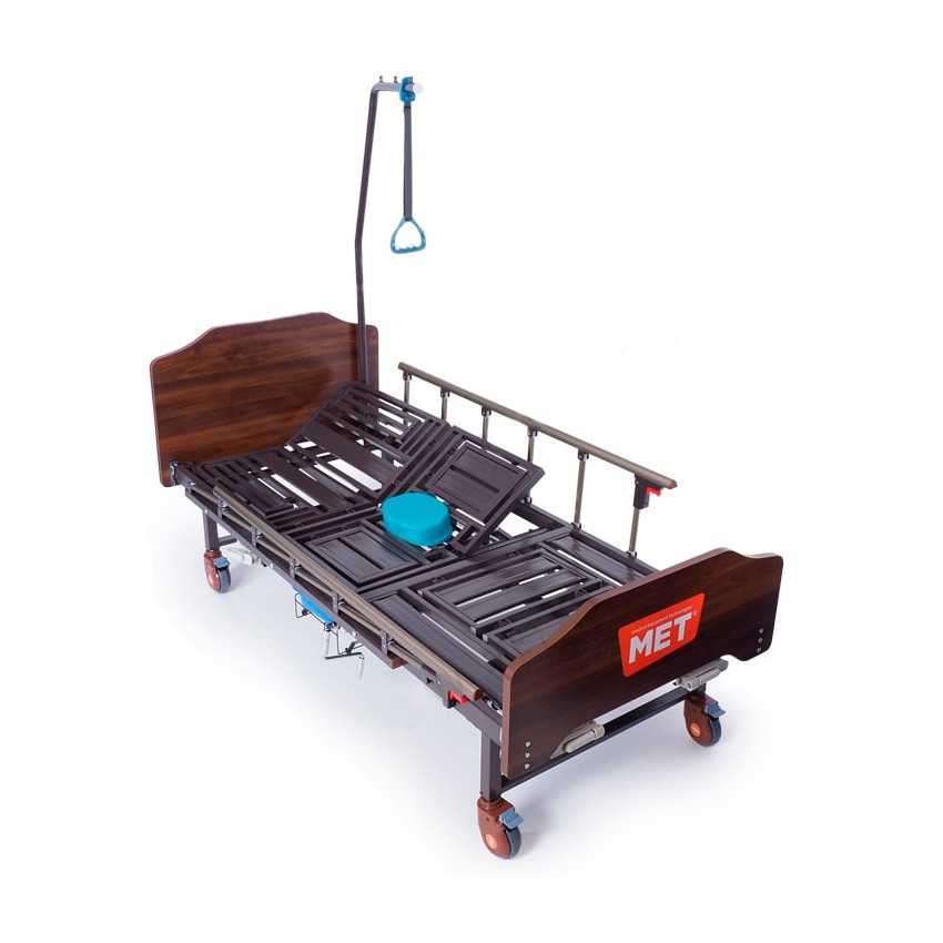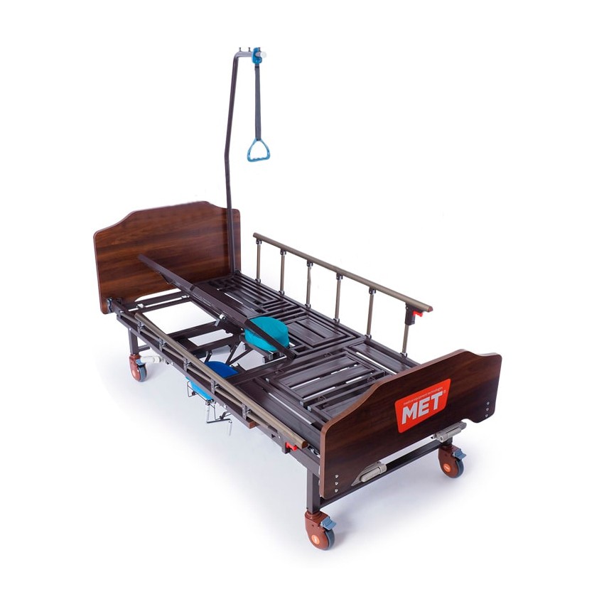 Трёхсекционная функциональная кровать MET KARDO с правосторонним туалетным устройством, интегрированным в основание ложа кровати. Довольно редкое техническое решение, позволяюще учесть особенности планировки помещения.