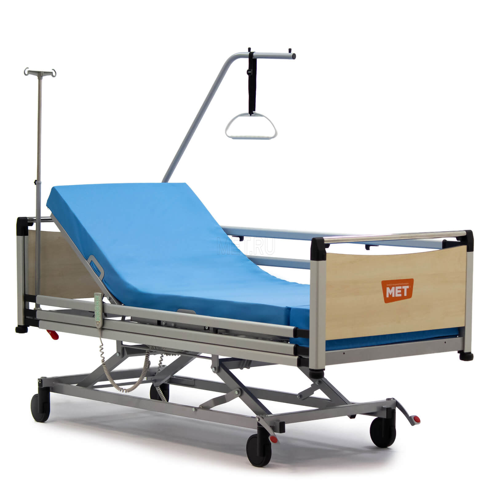 MET REBORN — это медицинская четырехсекционная кровать с электроприводом, предназначенная для ухода за лежачими больными.
