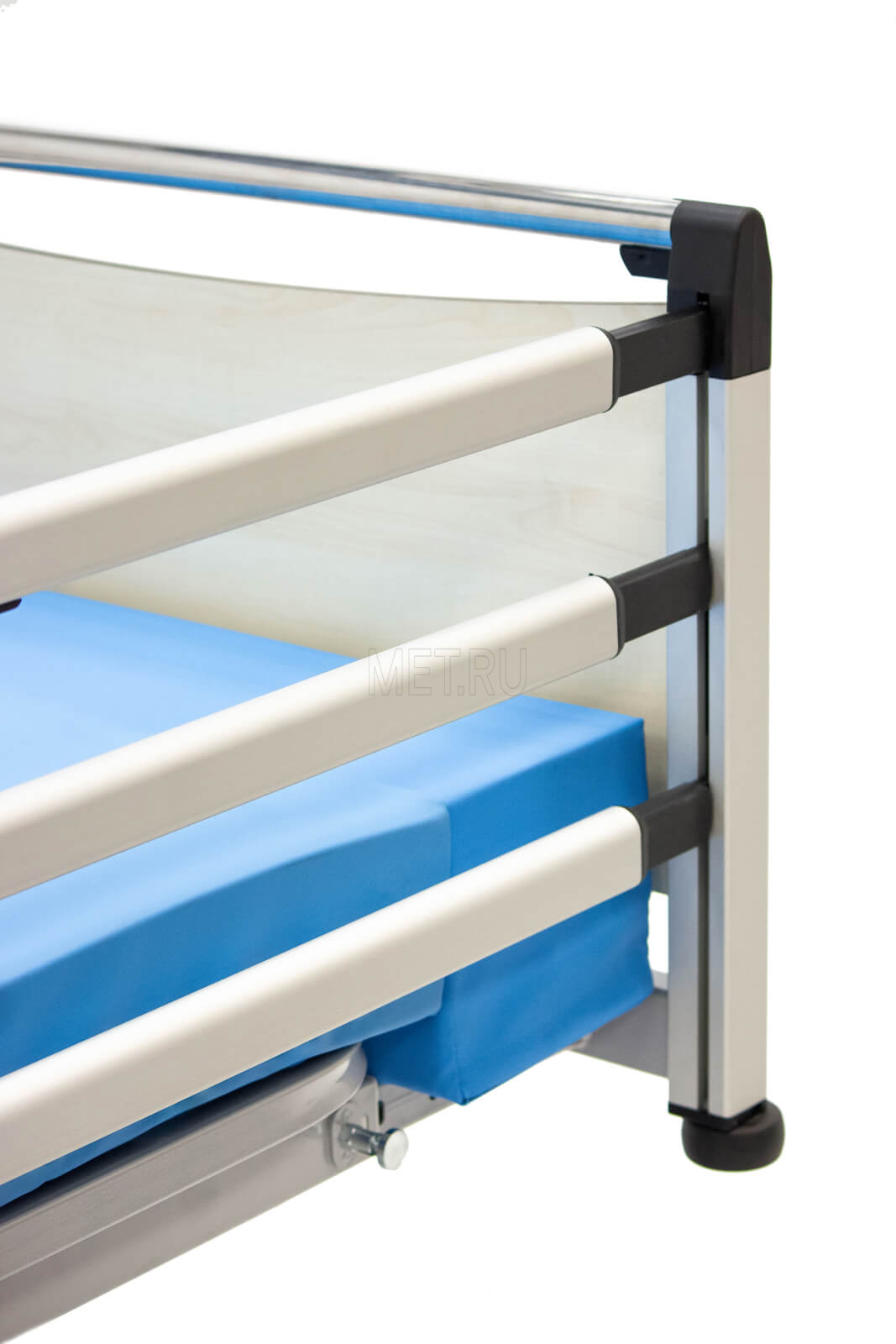 Складные алюминиевые ограждения, идущие вдоль всей длины кровати, предотвращают падение даже самых беспокойных пациентов.
