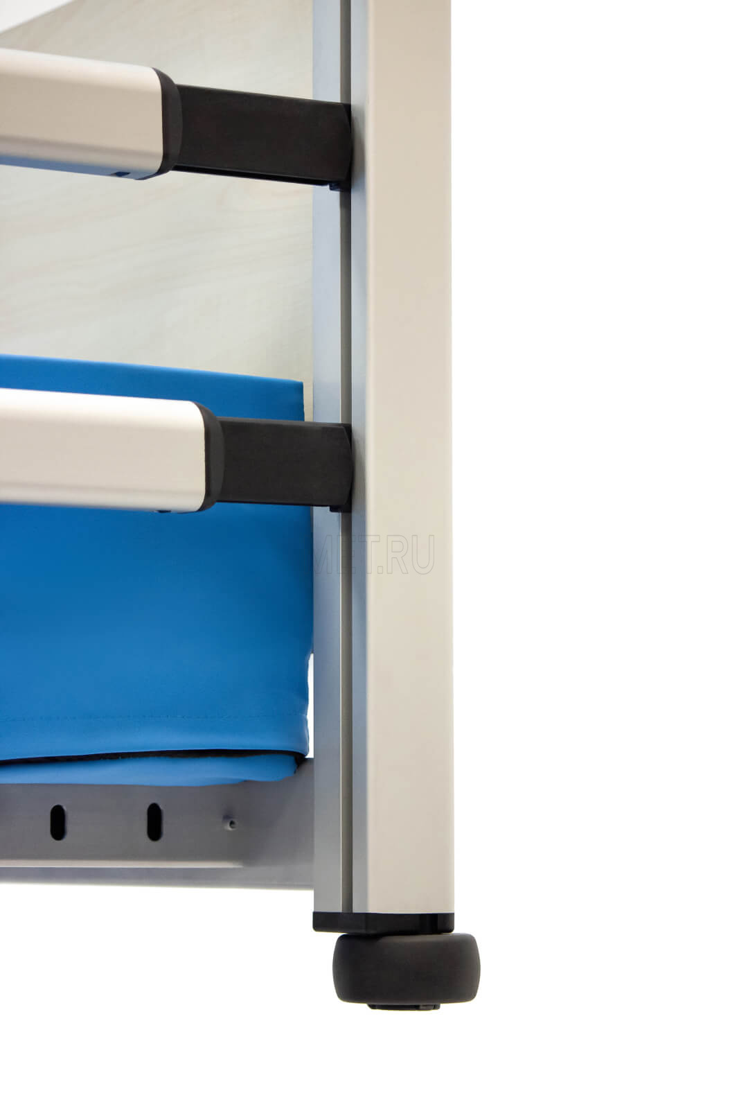 Справа и слева в головной части кровати расположены специальные отверстия для установки инфузионной стойки и других принадлежностей. В набор входит инфузионная стойка и штанга для подтягивания пациента.