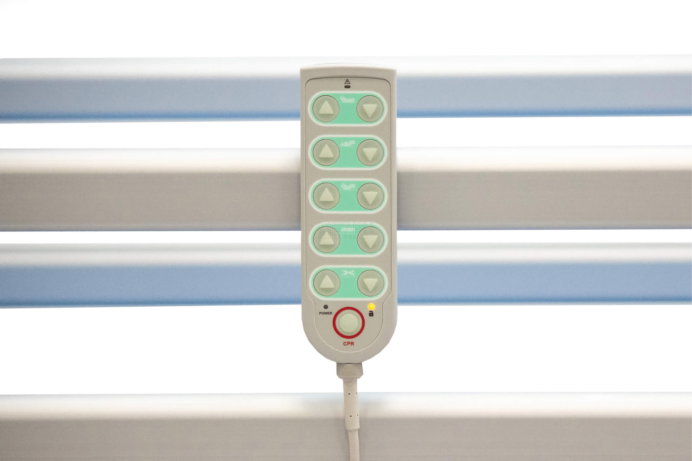 Высота ложа регулируется при помощи электропривода в диапазоне от 39 до 77 см. Возможность опустить основание кровати практически до уровня пола гарантирует безопасность спящих и беспокойных больных. Высота ложа регулируется, чтобы обеспечить удобство для ухаживающего.