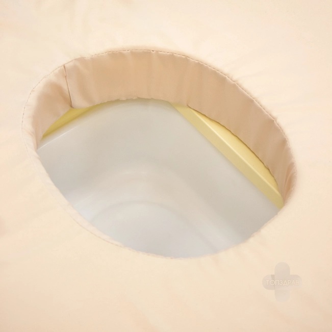 - Удобное мытьё головы: верхняя часть матраса снимается, освобождая место для установки ванночки со сливным отверстием. Для съёмной части матраса предусмотрен чехол, который застегиваются на молнию, чтобы избежать промокания.