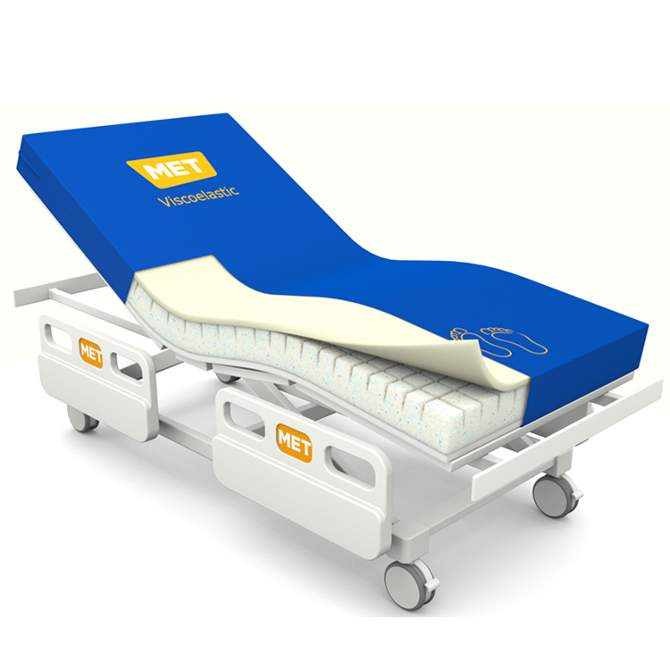 Трёхслойный противопролежневый матрас с широко штробированной основой из ПВВ, верхним слоем из вязкоэластичного пенополиуретана и чехлом из мембранного дышащего материала TECHMAFLEX, обладаюшего бактериостатическими свойствами.