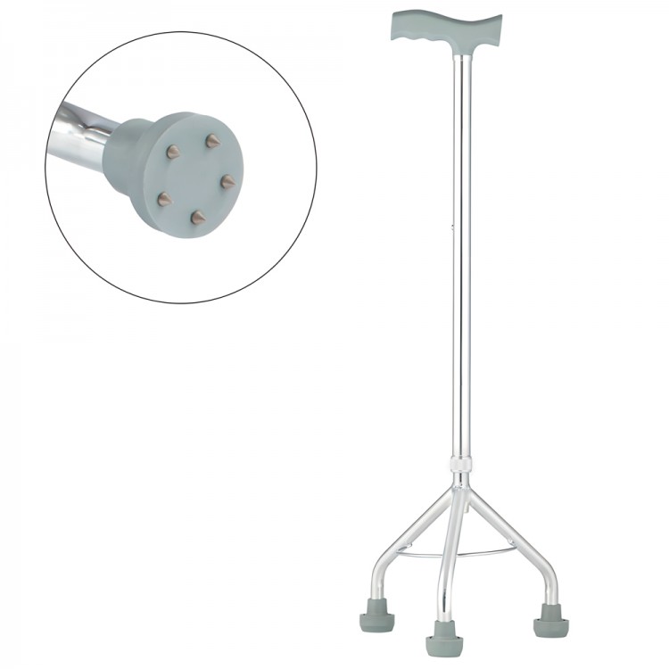 Трость оснащена тремя ножками с устройством противоскольжения и съемными нескользящими насадками, обеспечивающими безопасность и повышенную устойчивость пользователя на скользких поверхностях.