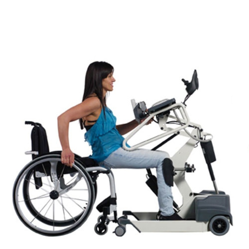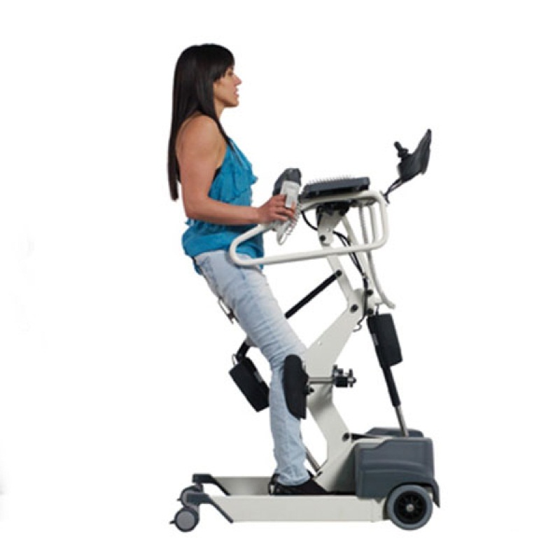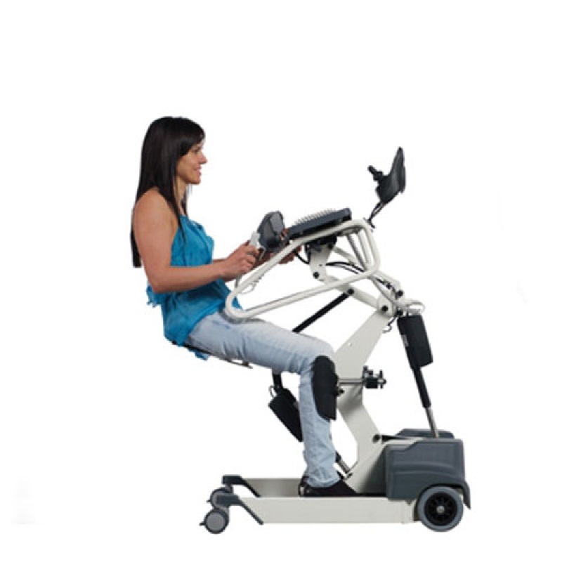 Модель максимально адаптирована для самостоятельного использования больным. Есть откидные опорные ручки, грудной упор с регулируемым углом наклона, отстегивающийся ремень-фиксатор, подколенные упоры, фиксатор пяток. Подъемный рычаг может быть удлинен и подстроен под индивидуальные особенности владельца. На грудном упоре есть кнопка экстренной остановки подъема. Отличная альтернатива креслу, помогающая в разработке и укреплении малоподвижных мышц.