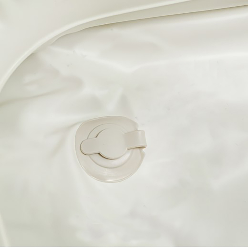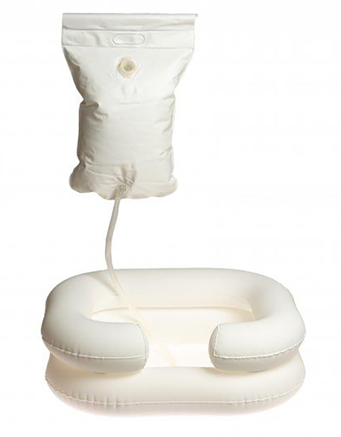 Ванночка снабжена системой слива воды, а так же имеет углубление для шеи, что позволяет аккуратно помыть голову, не намочив при этом остальные части тела и элементы кровати. Ко дну ванночки подсоединяется сливной шланг, что позволяет сливать воду сразу после водных процедур.