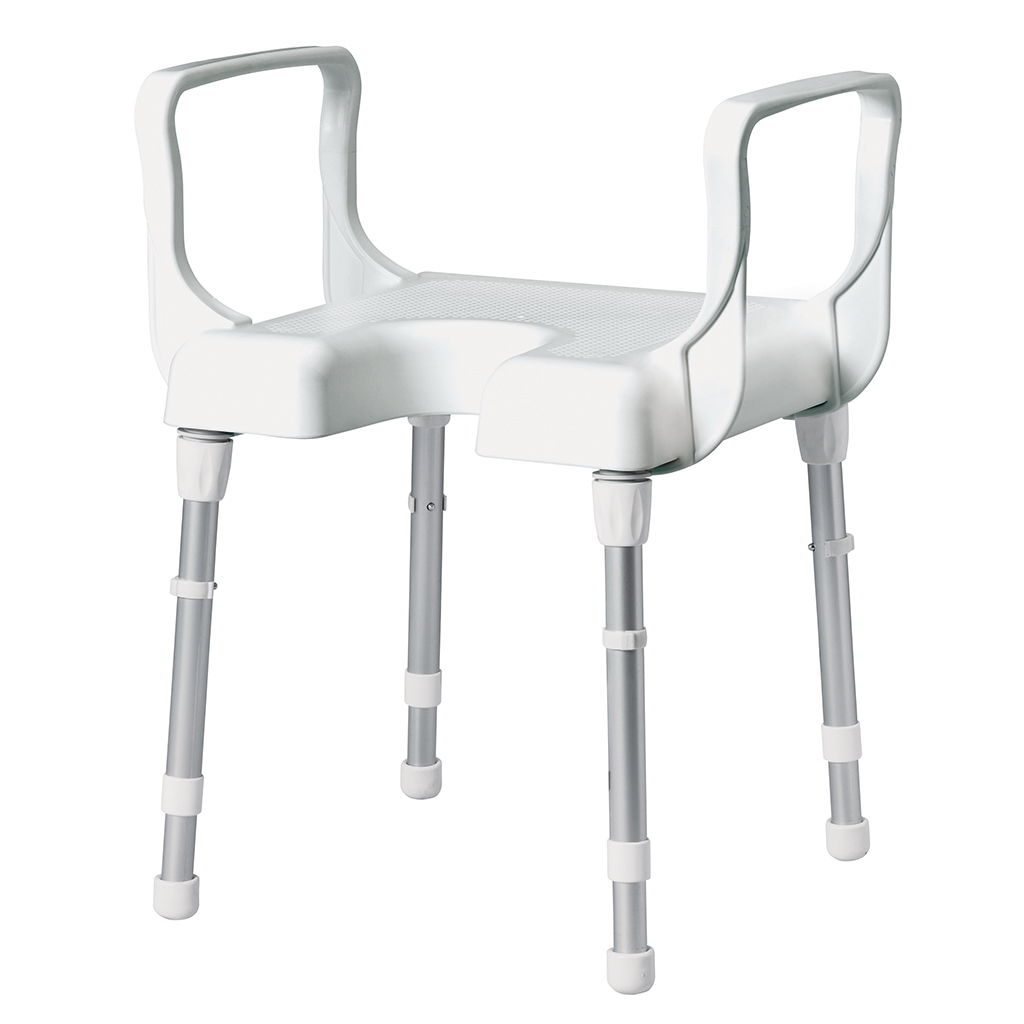 В модели душевого стула Канны предусмотрены подлокотники, которые при необходимости легко снимаются и крепятся обратно. Это повышает уровень комфорта пользователя. Есть регулировка по высоте, что помогает настроить конструкцию под определенные нужды каждого конкретного человека. На каждой ножке есть антискользящие насадки, которые крепко держат стул даже на самой скользкой поверхности. За конструкцией легко и просто ухаживать.