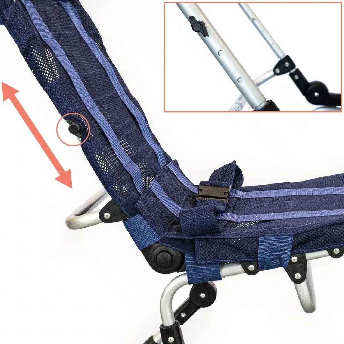 Возможность регулировки отдельных сегментов шезлонга - угол наклона подголовника, угол наклона спинки и подножки в сочетании с возможностью регулировки высоты спинки и глубины сиденья позволяет оптимизировать положение ребёнка и адаптировать изделие к индивидуальным параметрам в указанном диапазоне