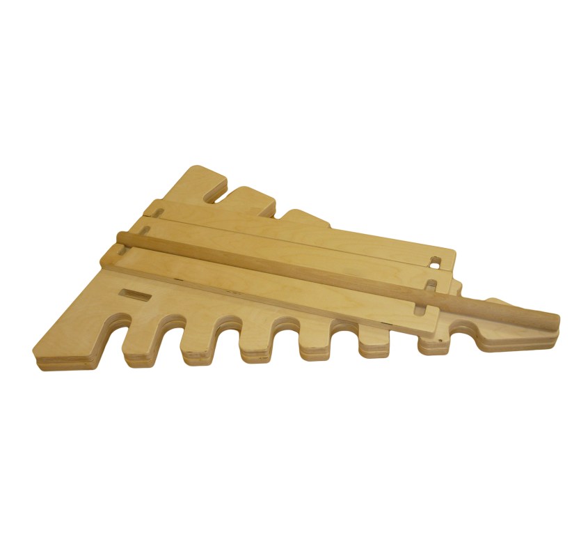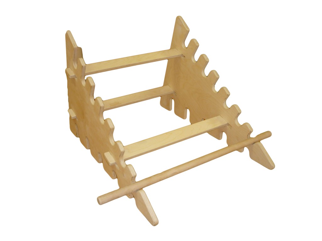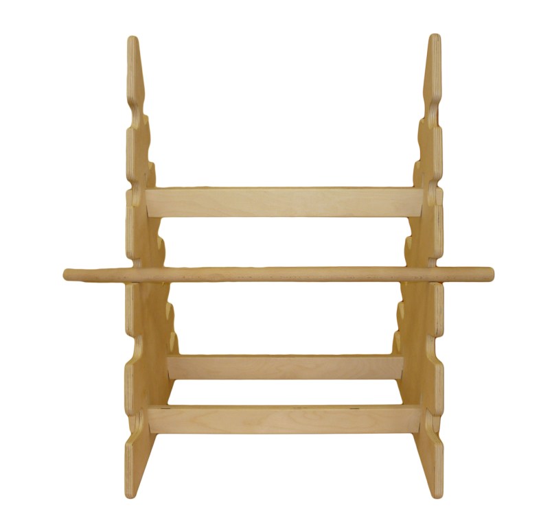 Представляет собой деревянную конструкцию, двух вертикальных боковин в форме «елочки» - треугольник с вырезанными пазами (с одной стороны - 7 пазов, с другой - 5), горизонтальных распорных планок, комплектуется гимнастической палкой длиной 70 см, диаметром 2,5 см.
