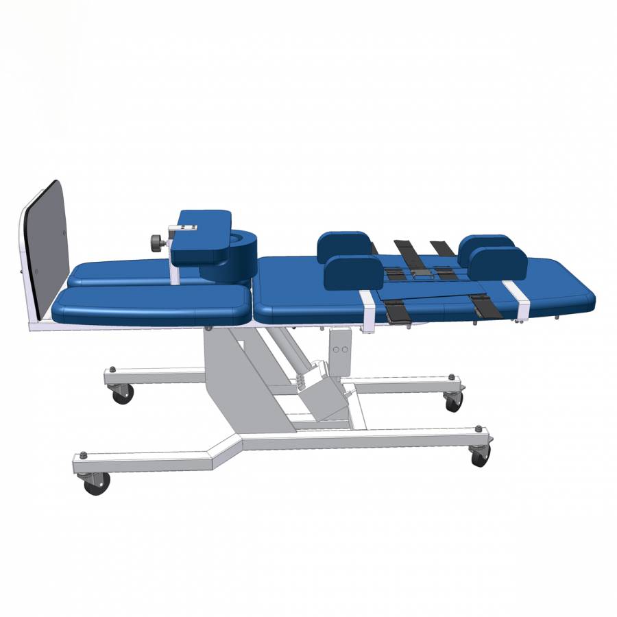 - Боковые упоры, ножной прижим и жилетка позволяют надежно фиксировать пациента