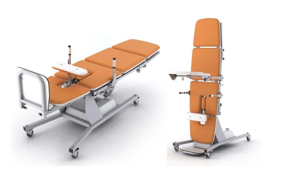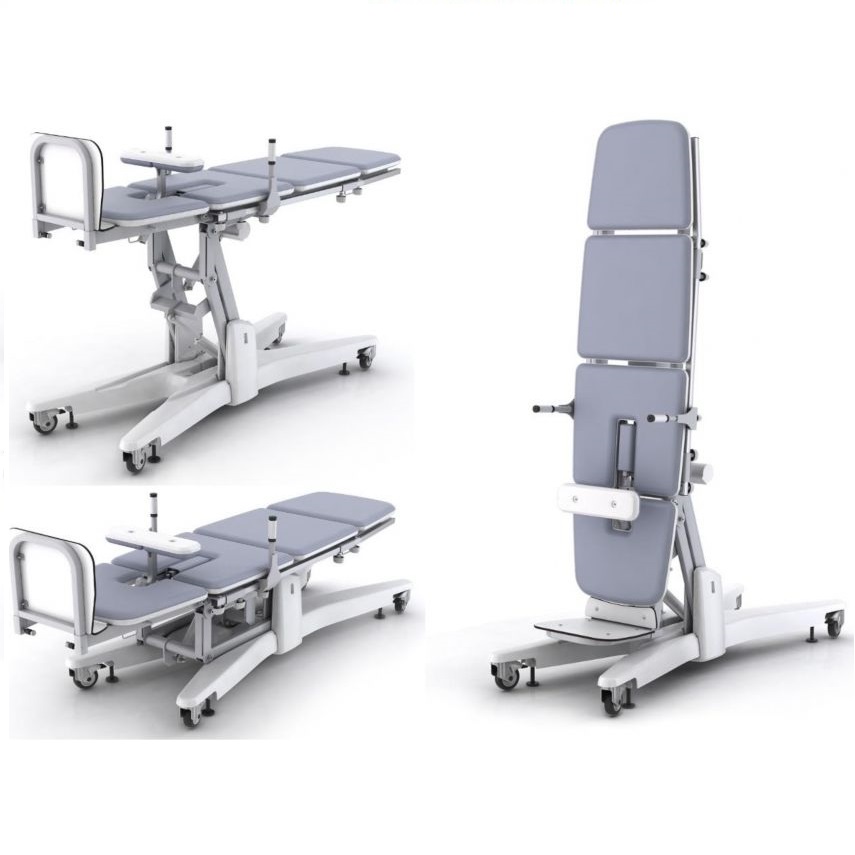 - За счет регулировки высоты в горизонтальном положении обеспечивается простота перемещения пациента с кровати на вертикализатор.